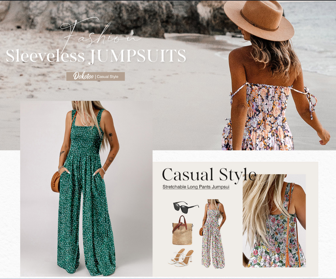 Dokotoo Women's Casual Printed Loose Overalls Jumpsuits Long Pant Rompers