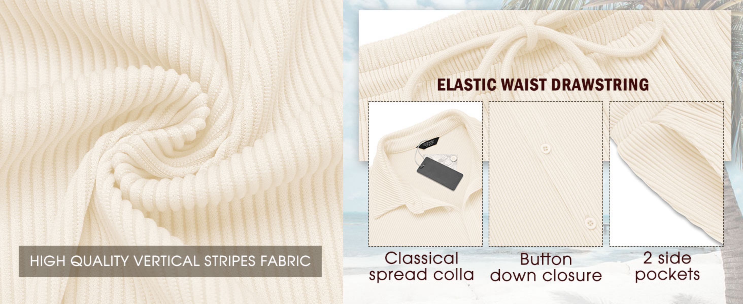 Mens Casual Pair Outfit are made of high quality Vertical Stripes fabric. Soft, breathable and skin-friendly, it provides a comfortable and relaxing wearing experience in summer.