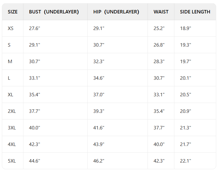 SIZE CHART: