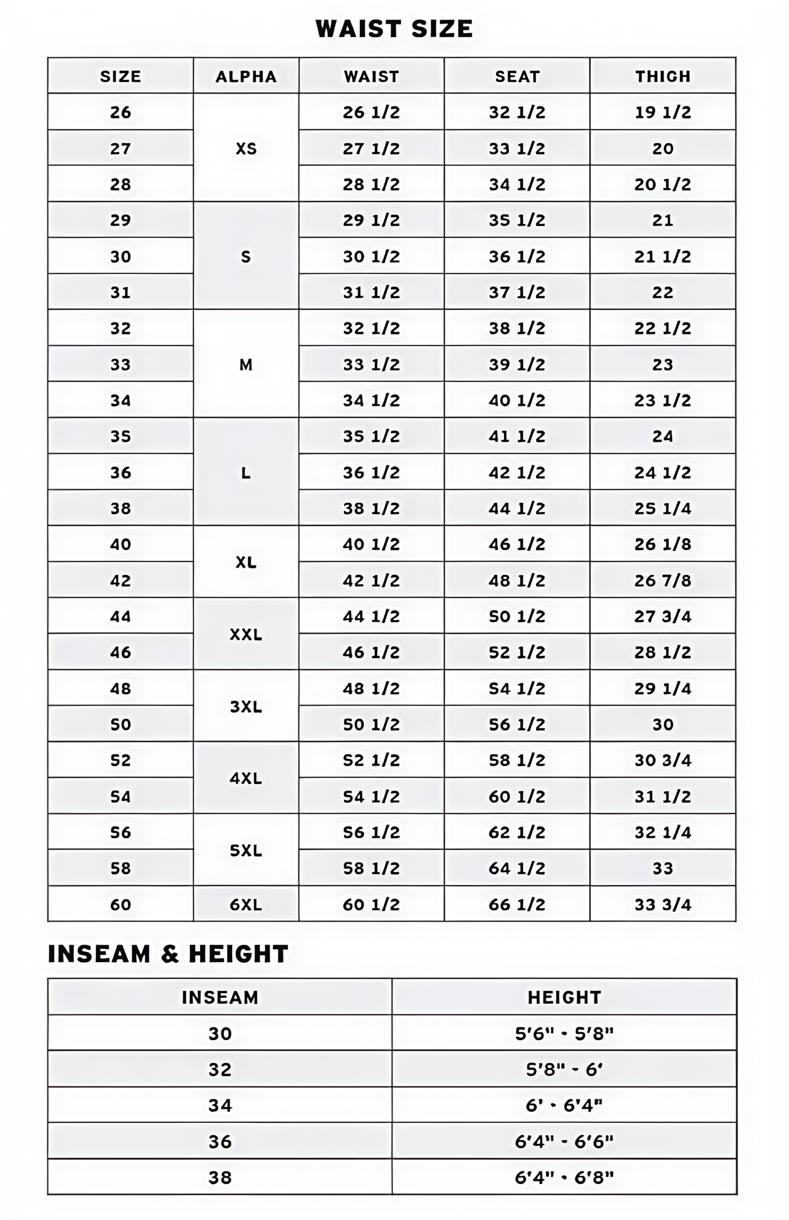 Size chart(inch)