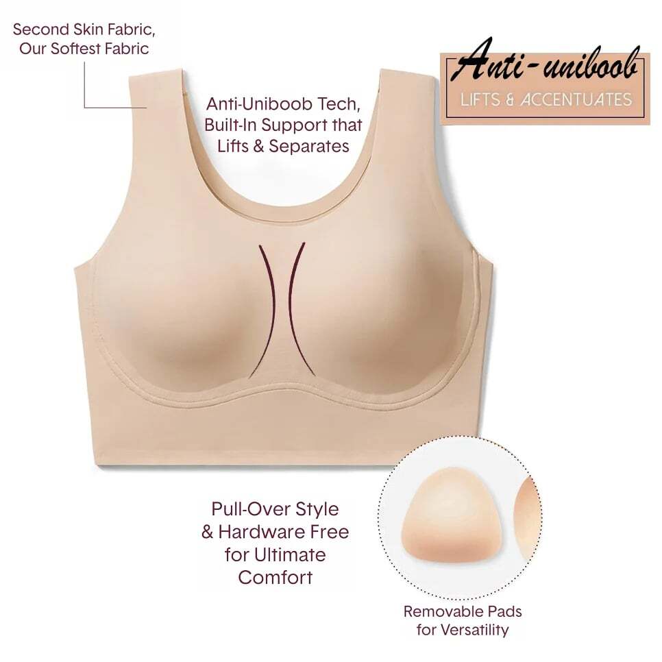 ANTI-UNIBOOB: This medium-coverage bra, designed for E+ cups. This bra uses molded foam cups to keep your breasts lifted and separated (Anti-uniboob), while still feeling super soft against the skin.