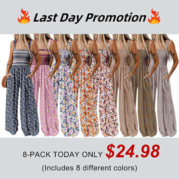 Women's Casual Loose Overalls Jumpsuits One Piece Sleeveless Printed Wide Leg Long Pant Rompers With Pockets