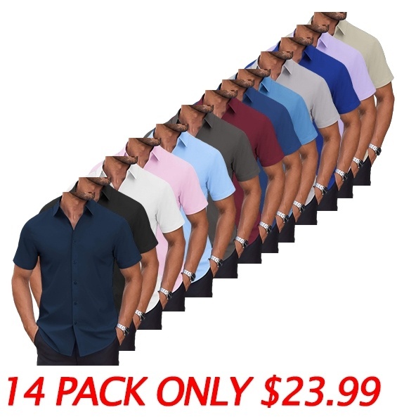 Men's Short Sleeve Dress Shirts Casual Button Down Wrinkle-Free Shirt