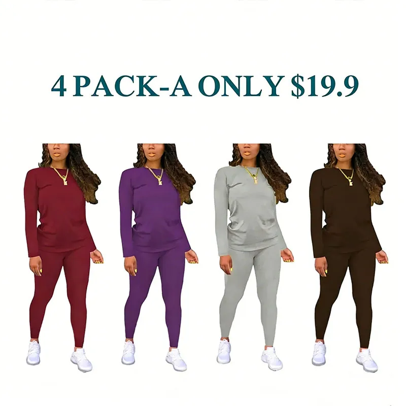 Women's Solid Drop Shoulder Tee & Elastic Waist Skinny Pants Two-piece Set