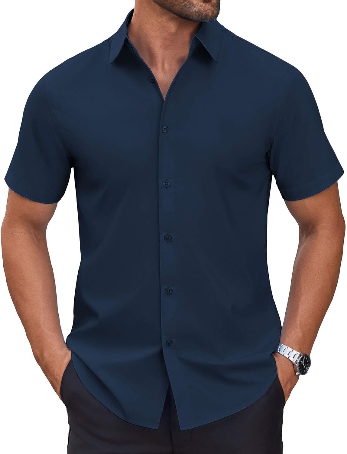 Mens Short Sleeve Dress Shirts Wrinkle Free Casual Button Down Shirts Summer Untucked Dress Shirt