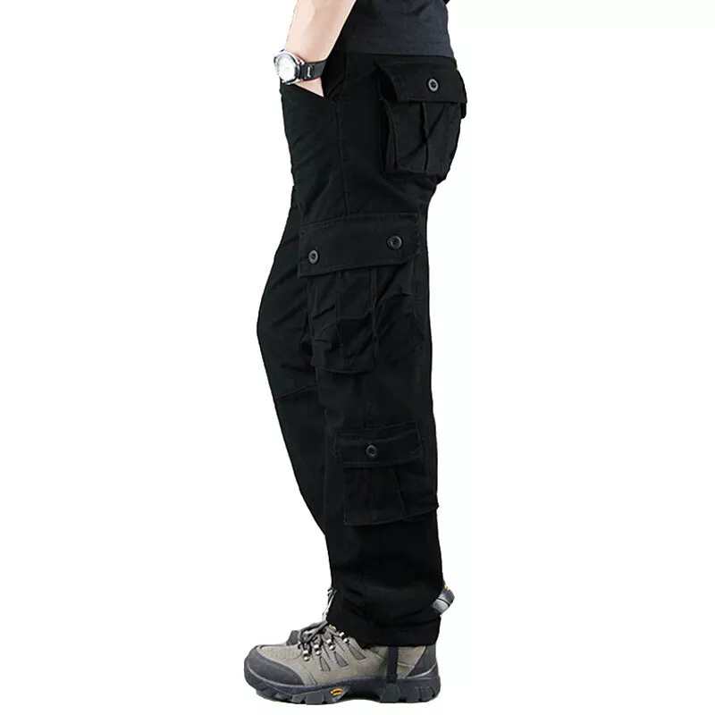 • Men's Cargo Pants 100% Cotton Work Trousers Tactical Combat Outdoor Hiking Pant