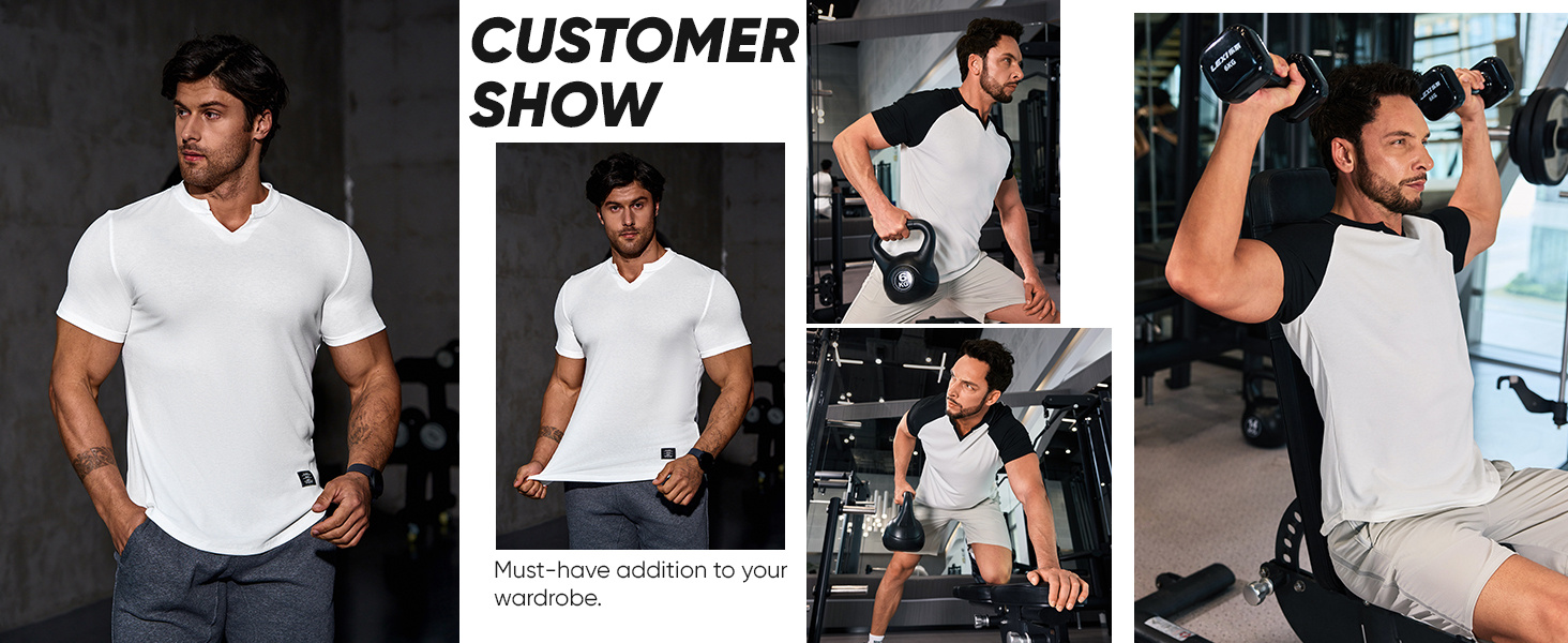- Multiple occasions: This short sleeve muscle T shirt Running,joggers,power walking,cycling,hiking,gym training. Pair them with chinos or jeans for casual daily wear. These versatile longline T-shirts are essential basic garments that every man should have in their wardrobe. Suitable for all seasons, these T-shirts can be worn to the office, on a date, to the club, to the beach, or simply for casual daily wear.