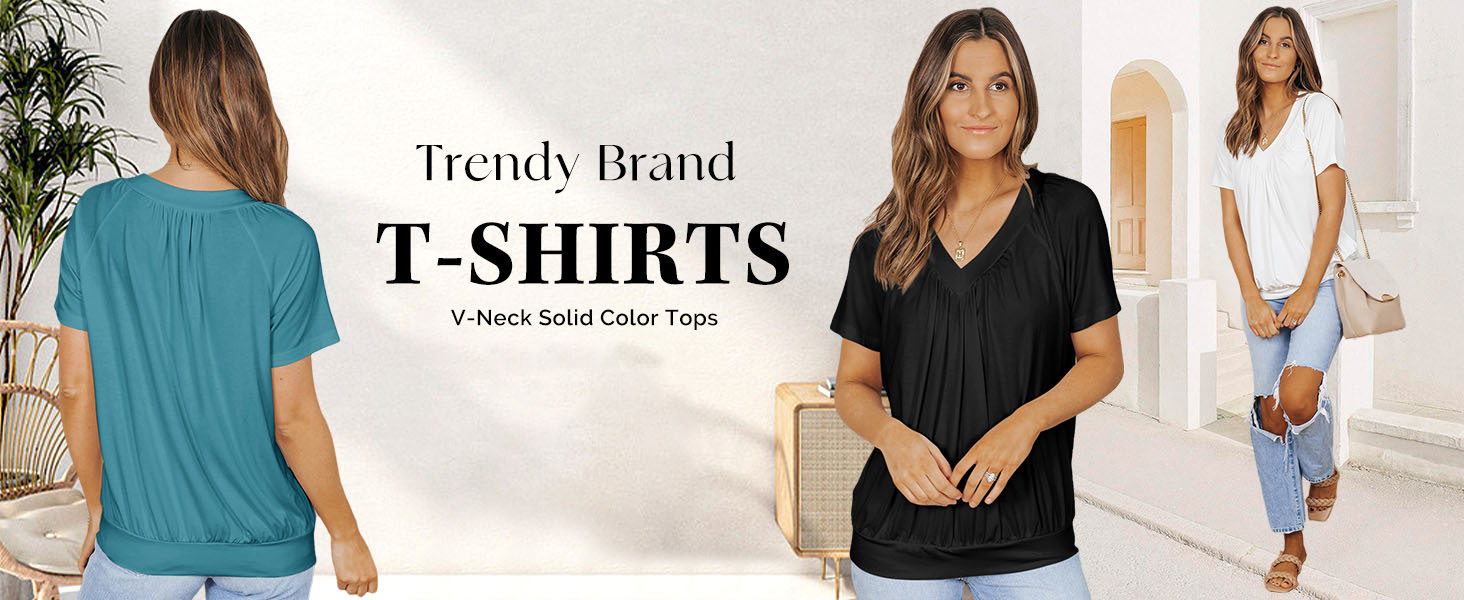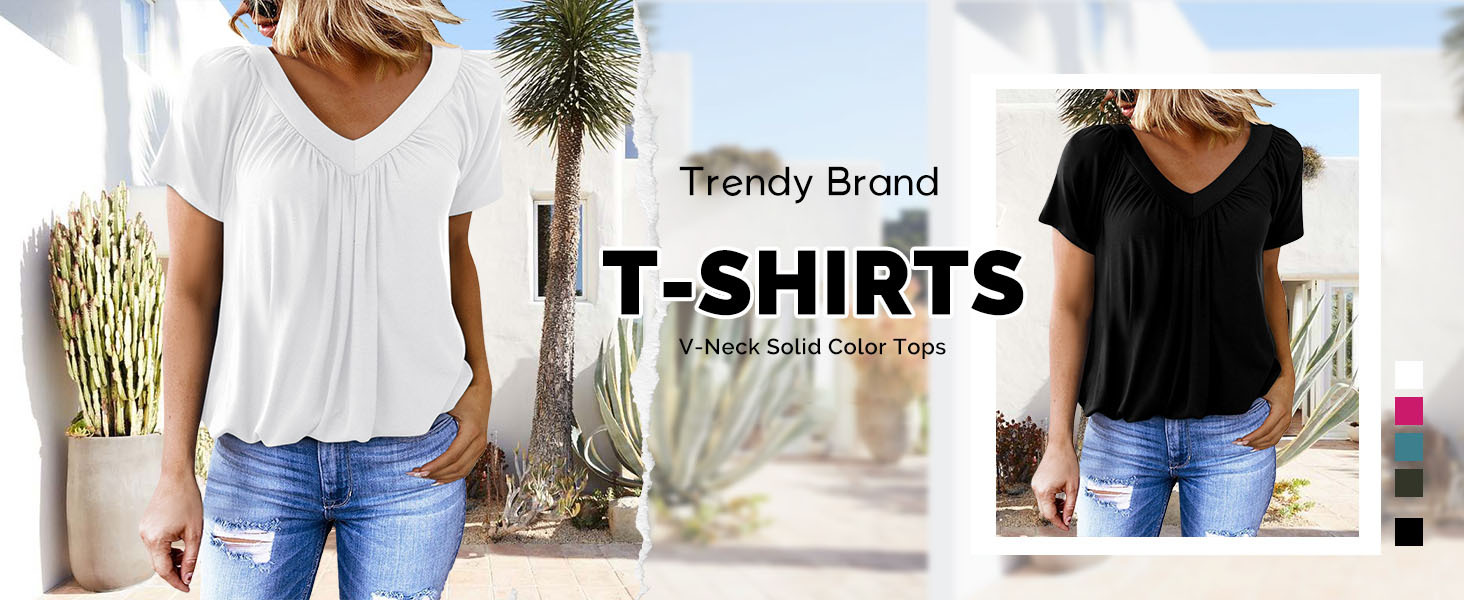 - Feature: Short Sleeve Shirts, Solid Color, Loose Fit, Basic Tunic Tops, V Neck, Casual Chic Style.