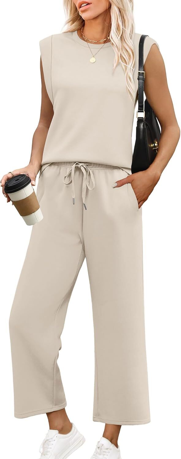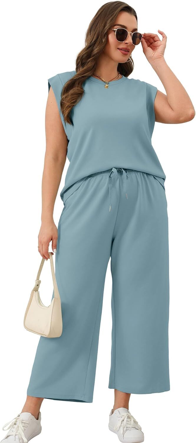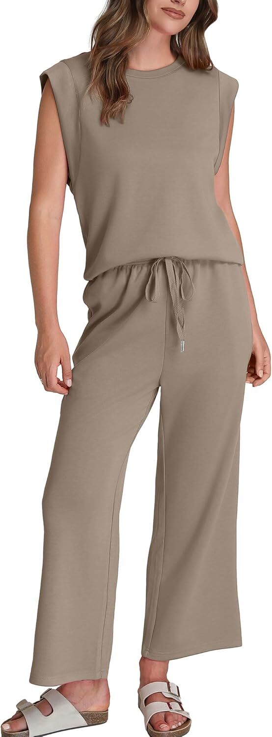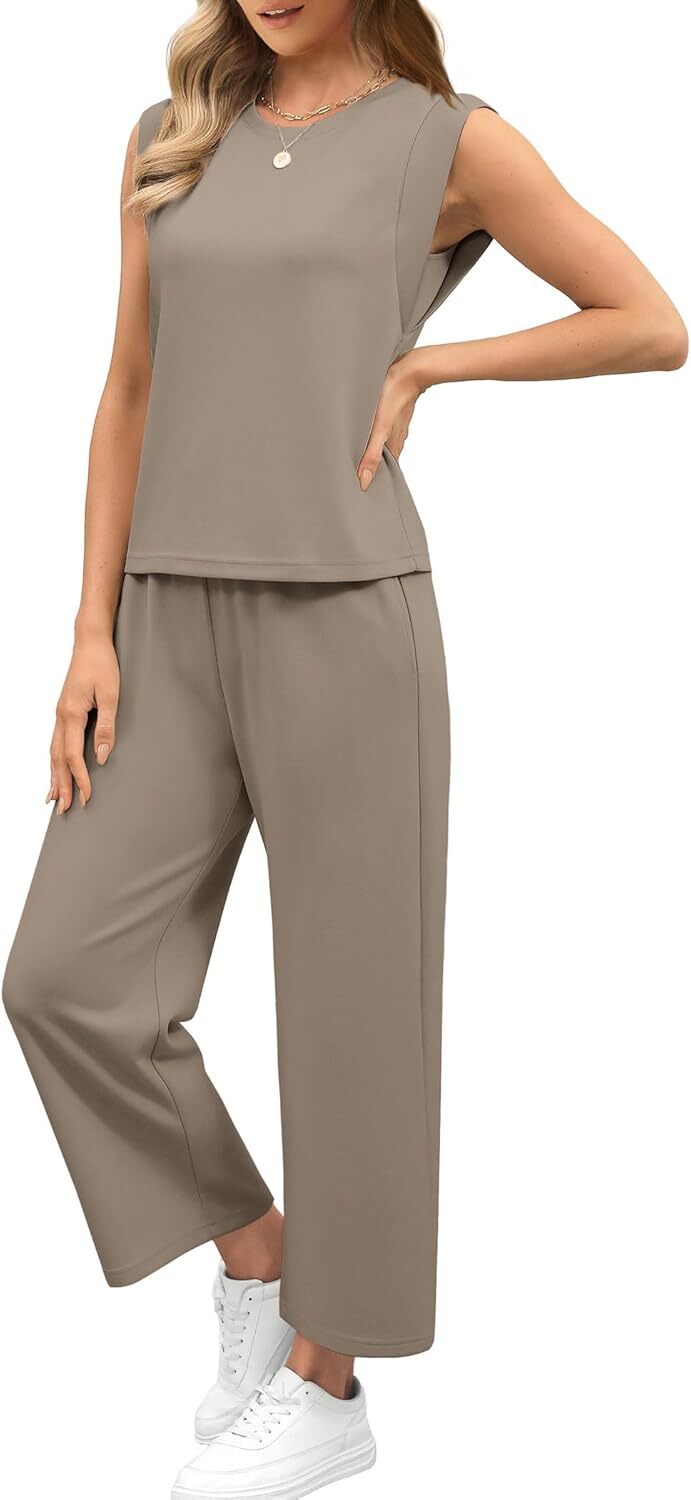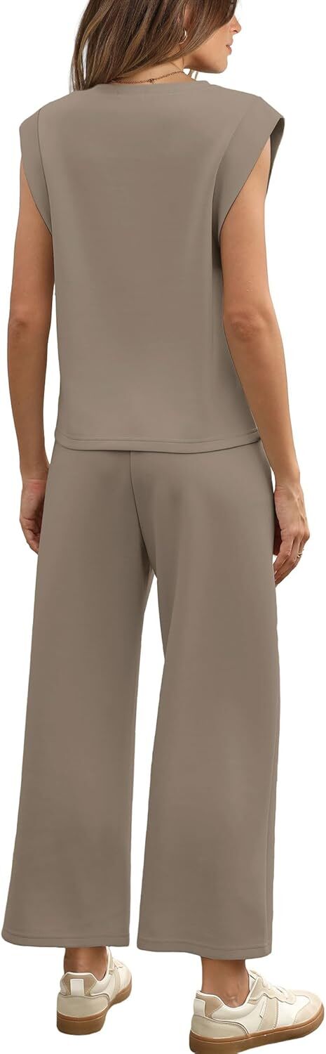 • Top: This travel outfits for women 2 piece sets are Crewneck tops/ sleeveless tops/ This basic cute loose top is long enough to hide your belly,and the extra lining design allows you to prevent exposure and travel easily.