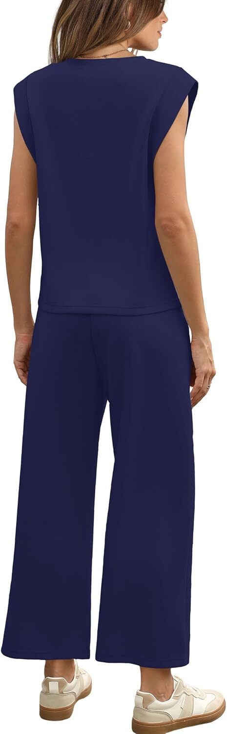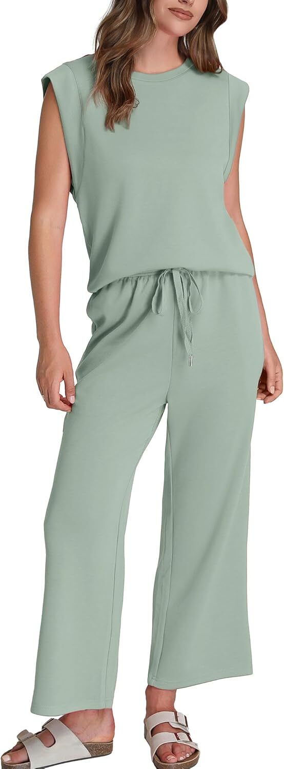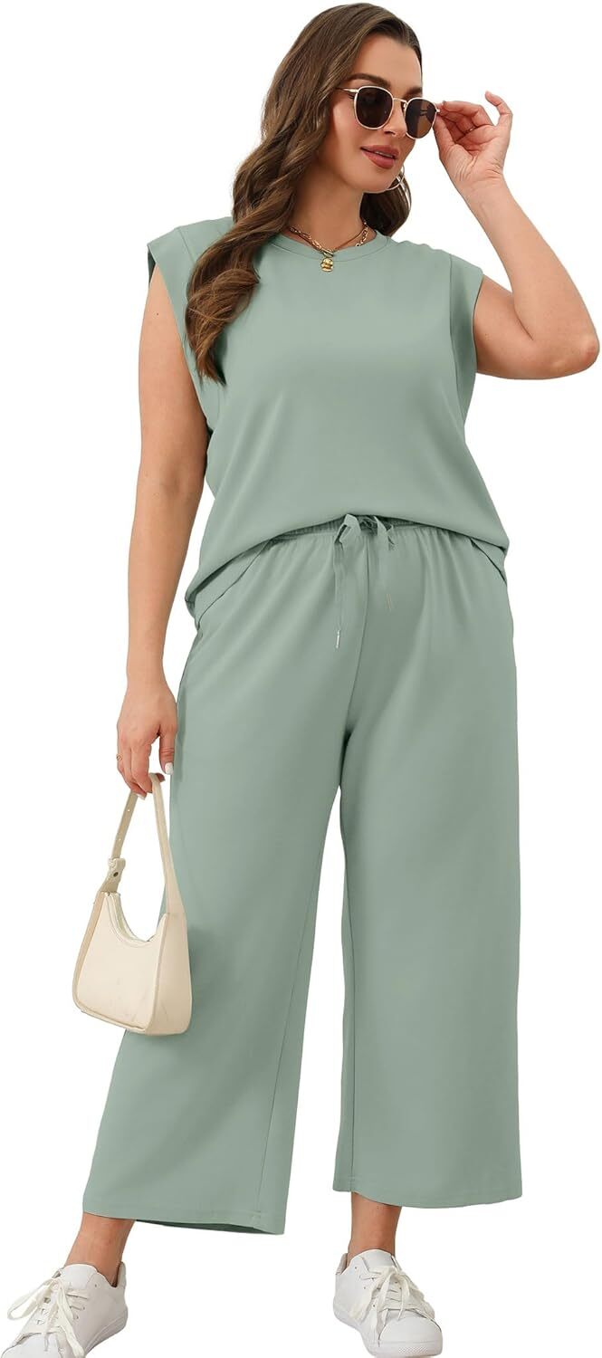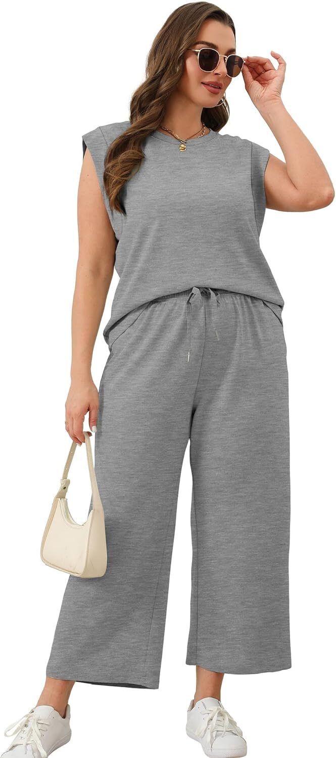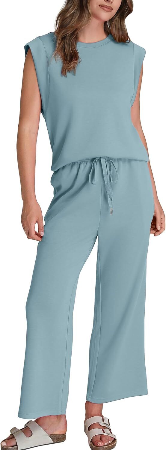 • Top: This travel outfits for women 2 piece sets are Crewneck tops/ sleeveless tops/ This basic cute loose top is long enough to hide your belly,and the extra lining design allows you to prevent exposure and travel easily.