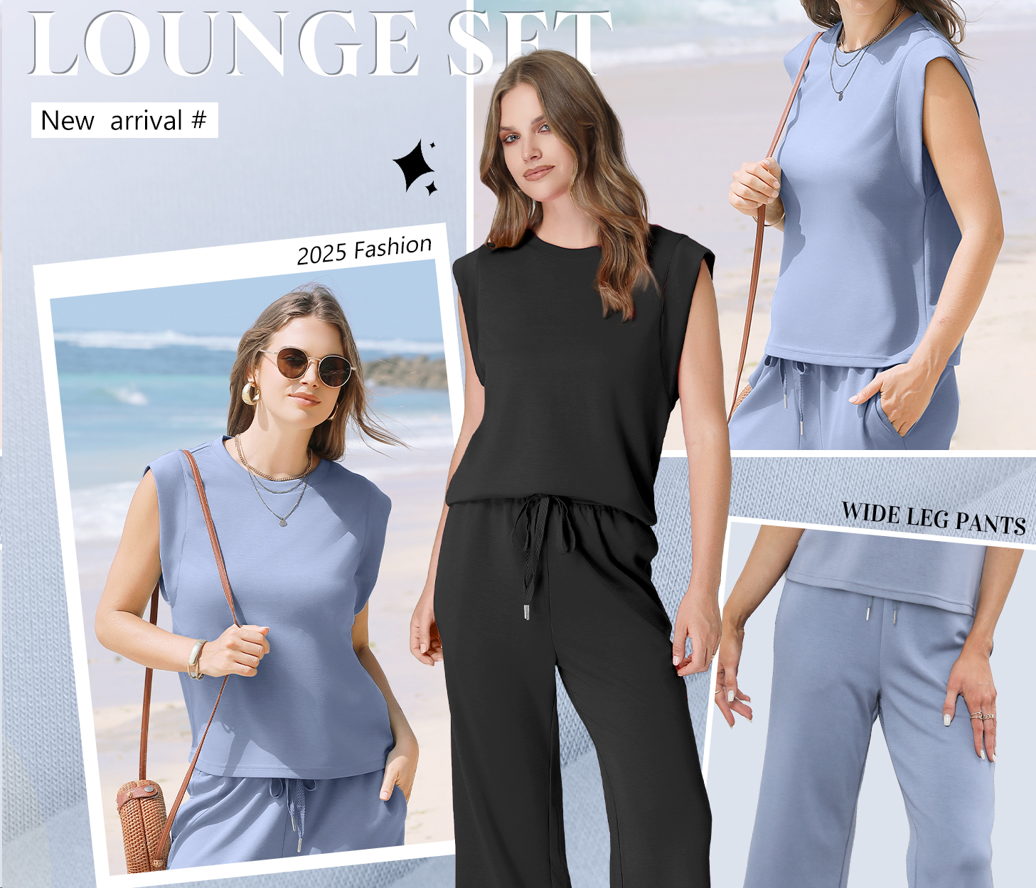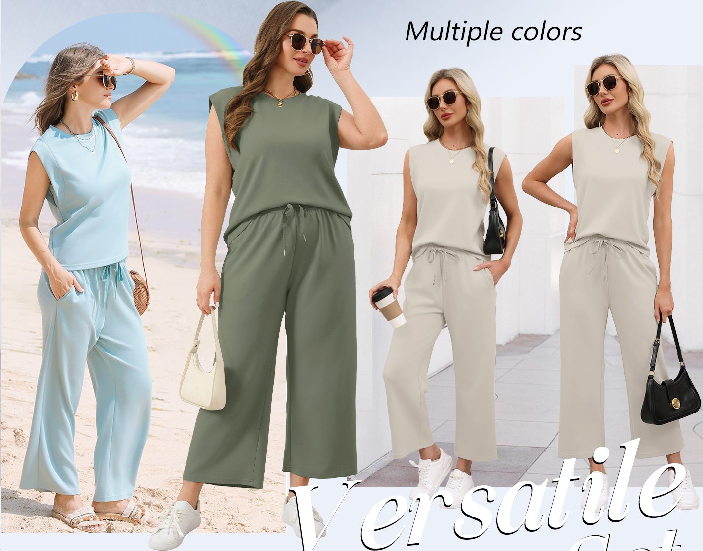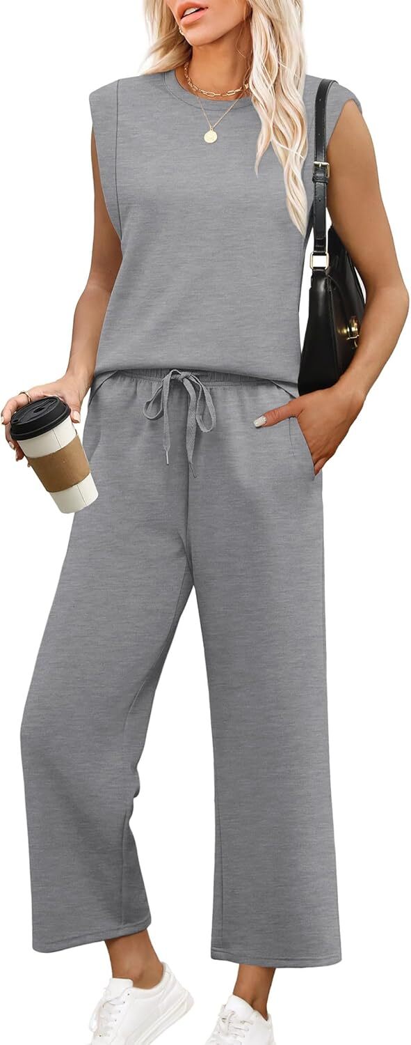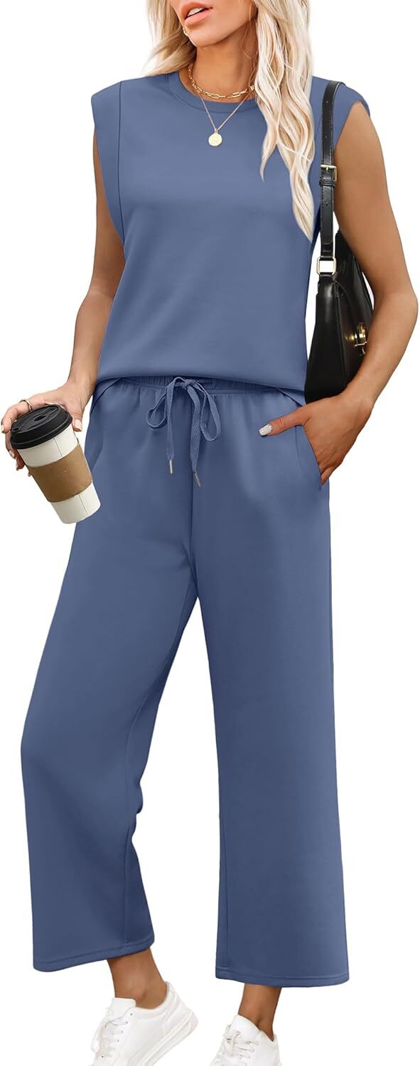 • Top: This travel outfits for women 2 piece sets are Crewneck tops/ sleeveless tops/ This basic cute loose top is long enough to hide your belly,and the extra lining design allows you to prevent exposure and travel easily.