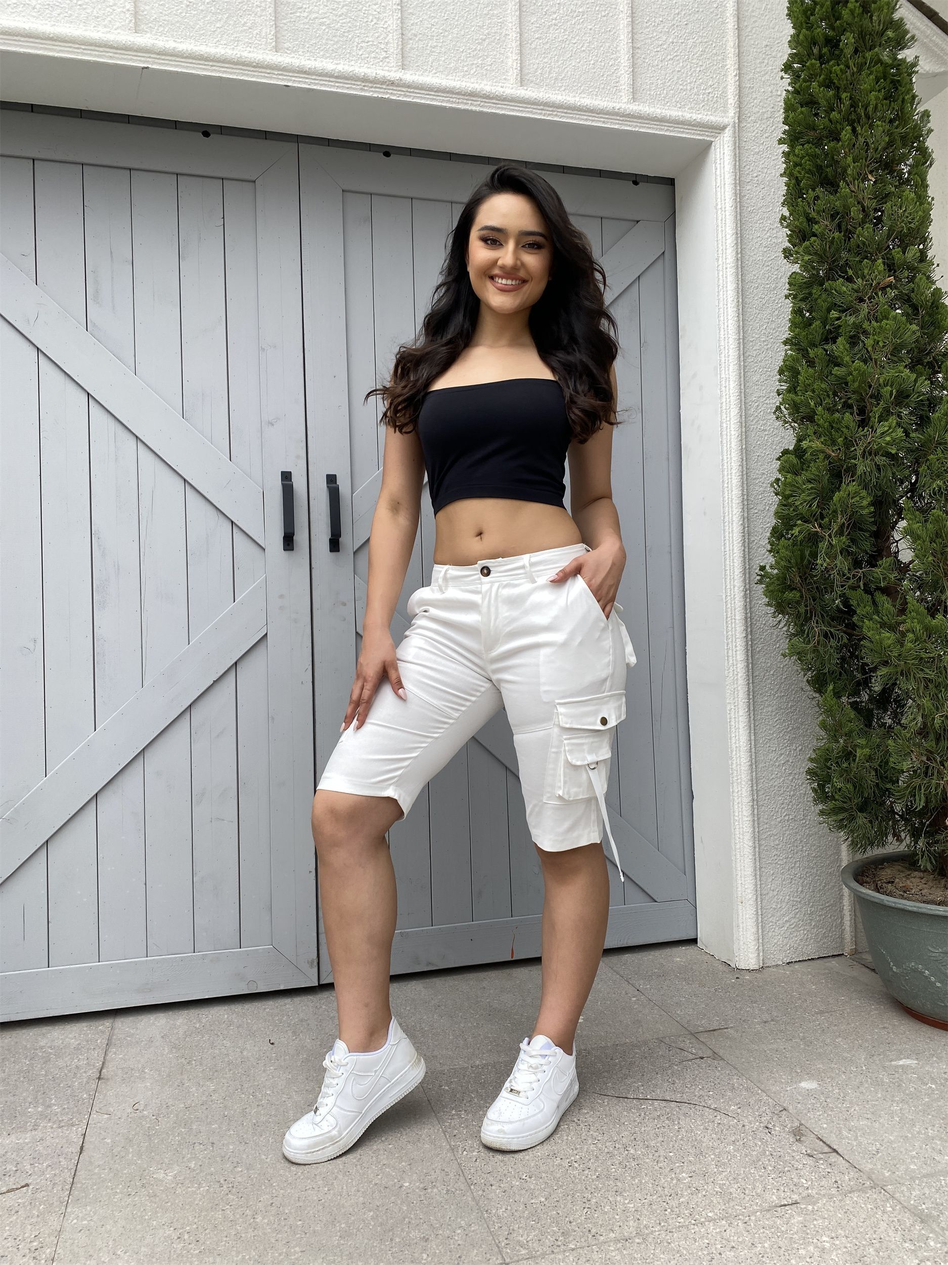 Stretch fabric: These women's cargo shorts are made from 98% cotton and 2% spandex, giving you the freedom to bend, squat, and stretch comfortably.