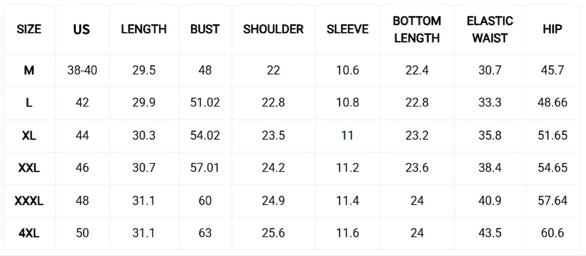 Size Chart(IN)