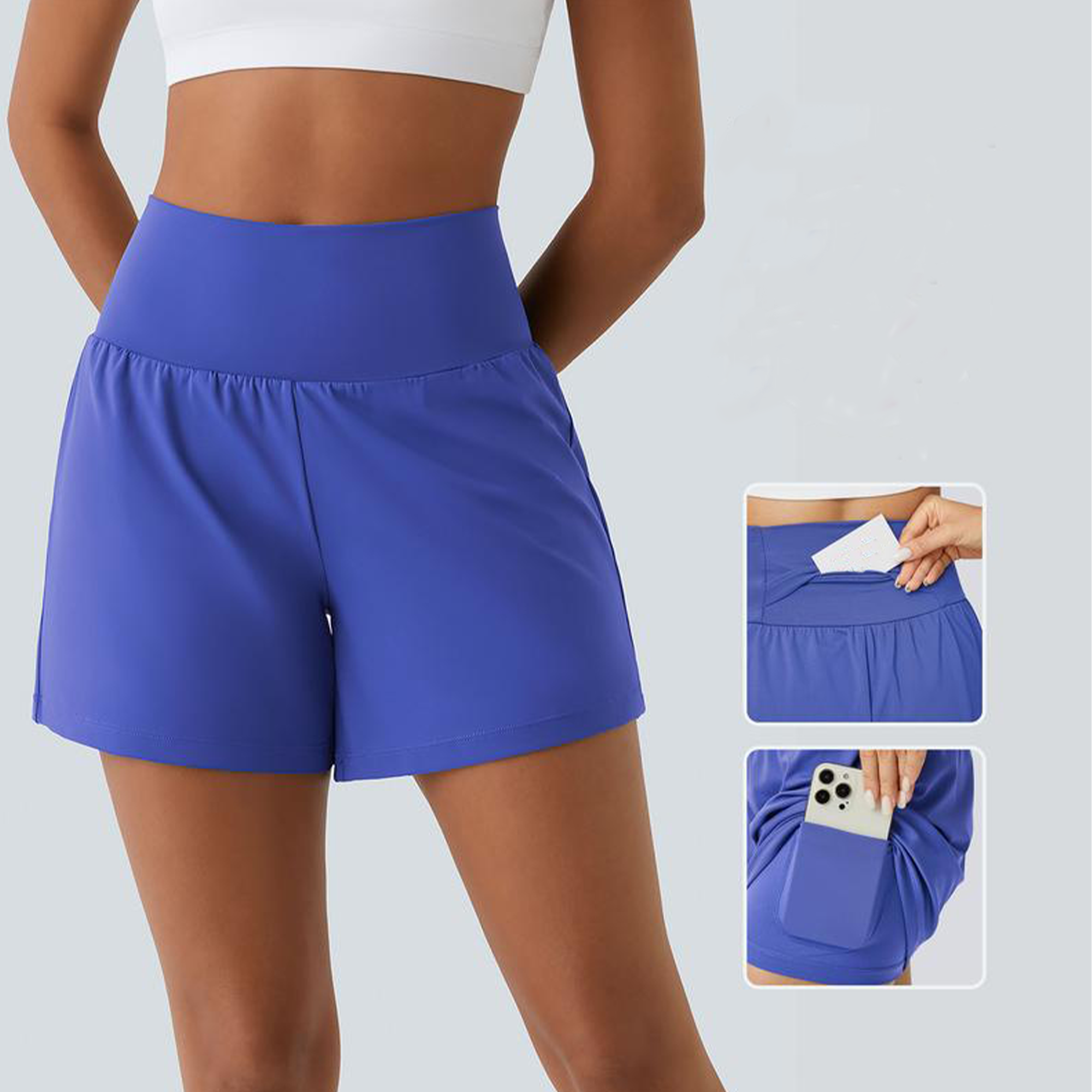 💝Last Day Promotion⚡12 piece ultra high waist back pocket and side hidden pocket 2 in 1 Yoga shorts